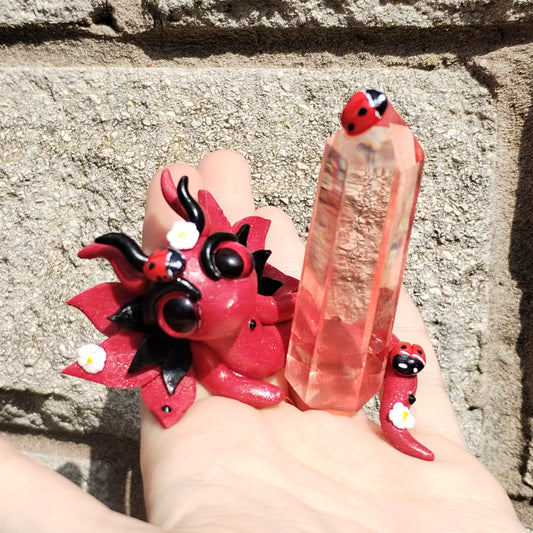 These are my one of a kind Crystal Dragons! They make the perfect magical/fantasy inspired décor for any home and add a little bit of whimsy into your life. I sculpt these cuties from Polymer Clay on top of beautiful Crystal pieces.