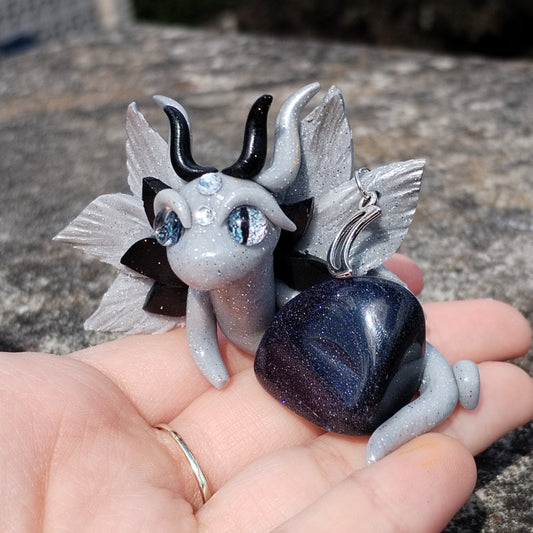 Moon Themed Blue Goldstone Crystal Dragon