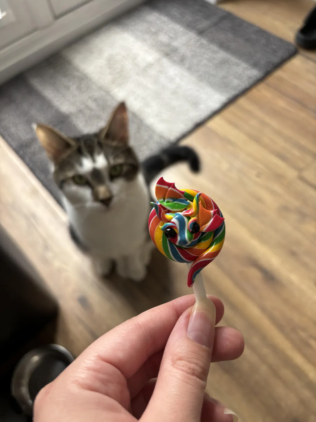 Handmade polymer clay dragon inspired by Lollipop as featured in my series A-Z Food Dragons!