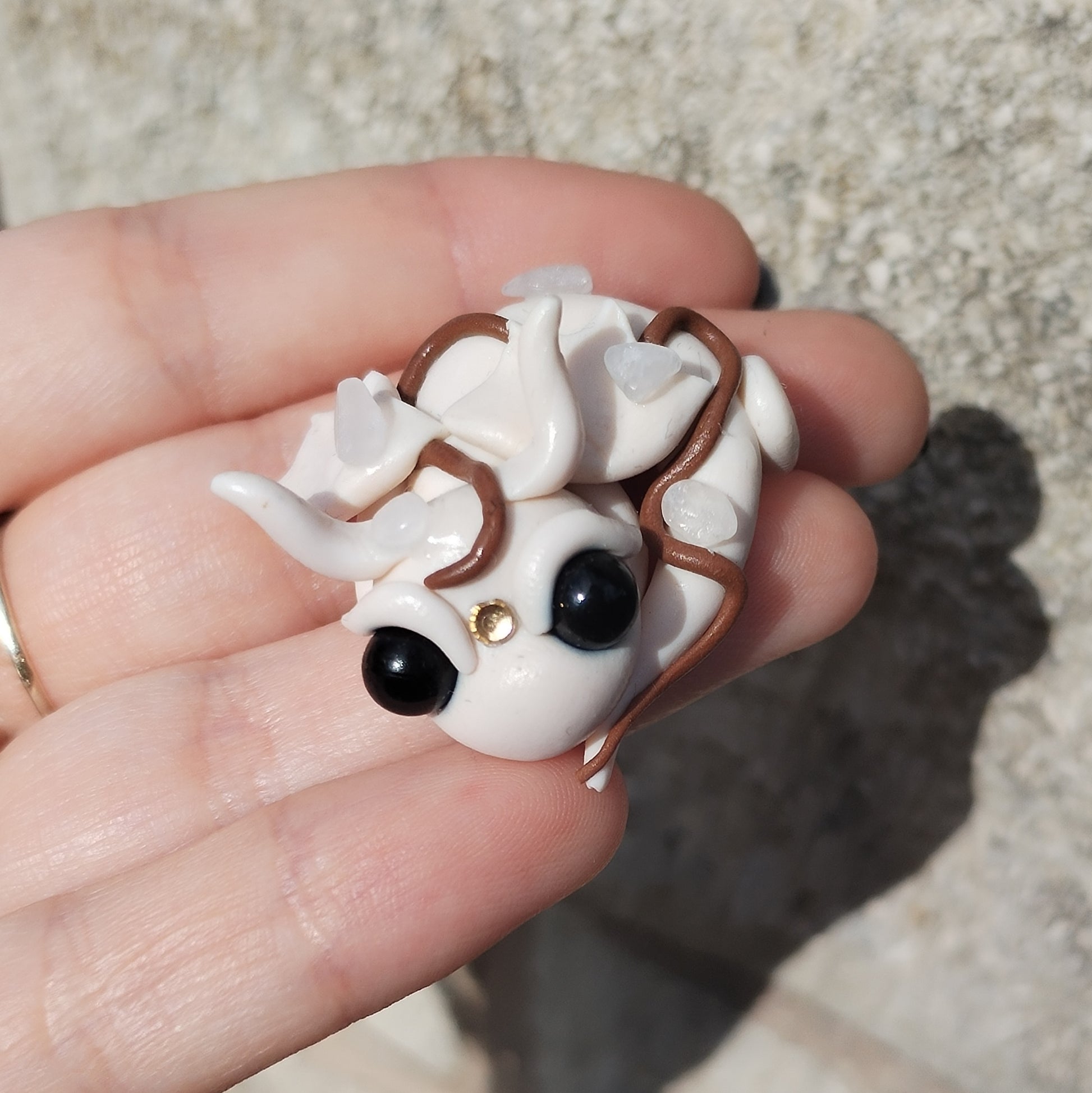 Adorable unique baby dragon carefully handmade from polymer clay with White Jade Crystal chips!